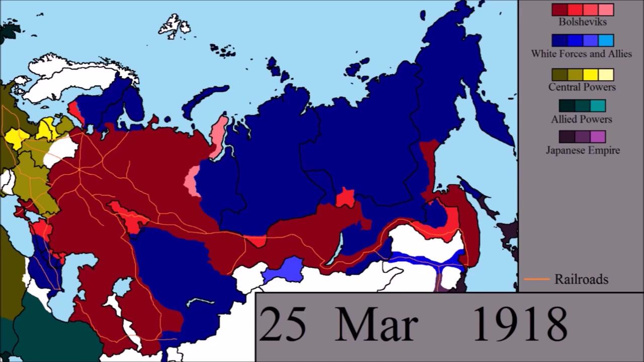 截止1918年夏天,蘇俄失去了四分之三的領土,全國5400家兵工廠,有3400家在敵人控制中,交通全部癱瘓,大部分產糧區都是敵人的控制範圍。