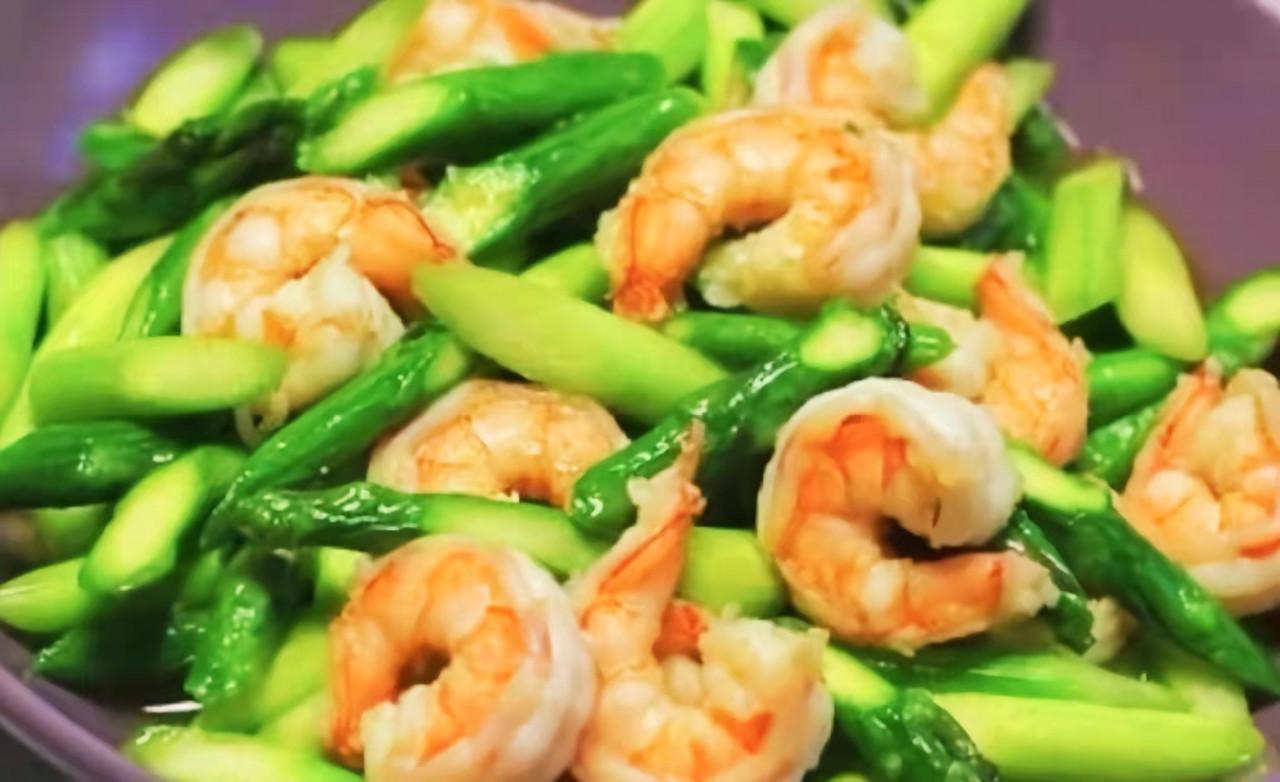 食材準備:蘆筍,蝦仁,蔥薑蒜,食鹽,料酒,雞精