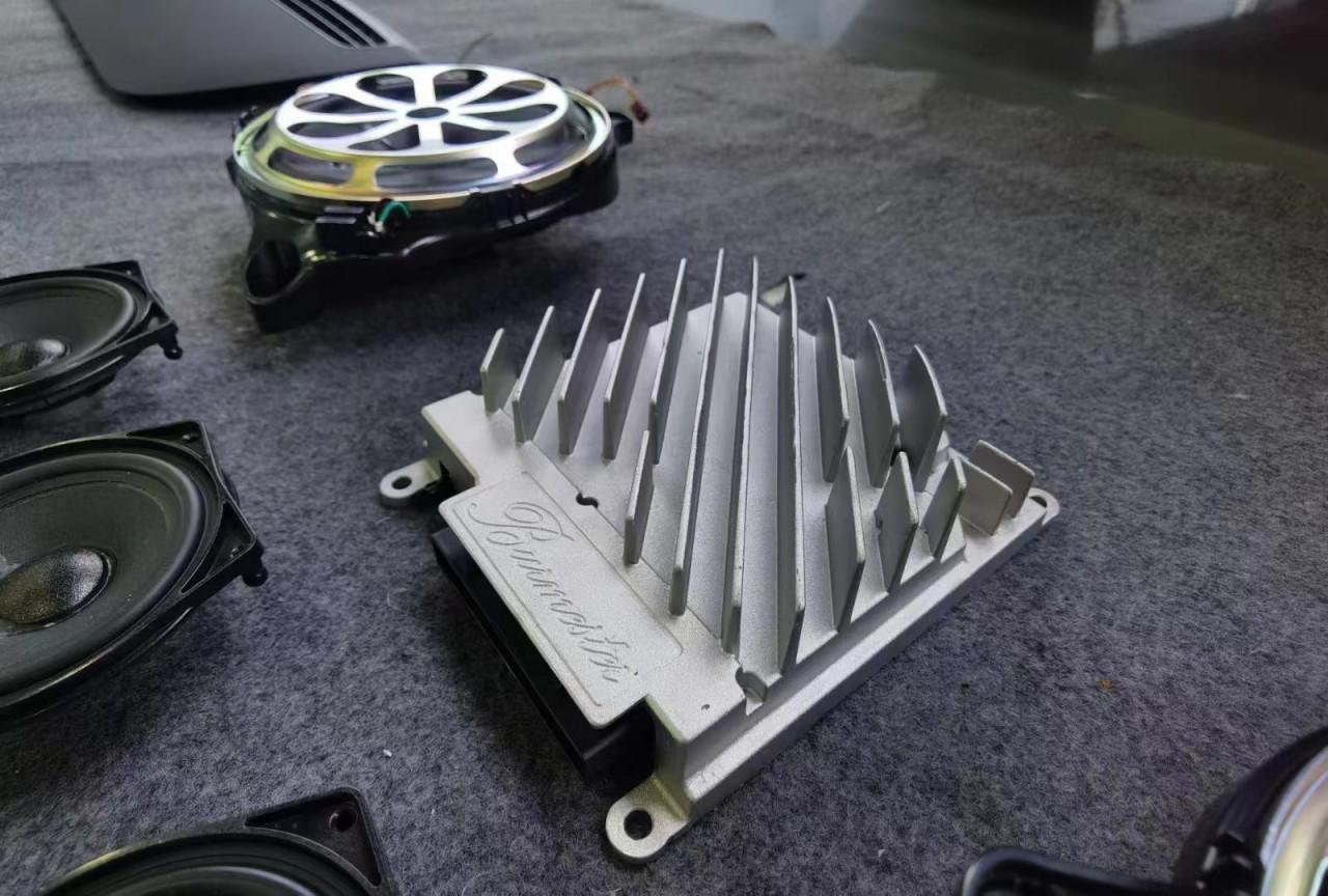 原車音響是由主機帶動的,並沒有音響功放,小柏林是有單獨的590瓦輸出功放,安裝在後尾箱的左側。