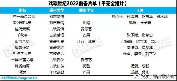 前景傳媒整理了華策影視、新麗傳媒、正午陽光、耀客傳媒、稻草熊影業、檸萌影業、歡瑞世紀這七大主流影視公司的部分儲備劇,並分析了2022年各影視公司的大劇佈局趨勢。