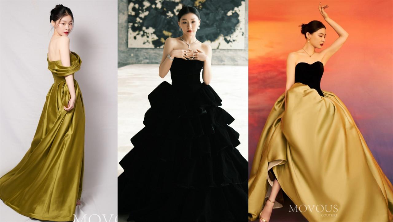 除了被馬凡舒穿出圈的這幾款禮服之外,金靖的出圈的禮服以及各大婚紗影樓都必備的鞠婧禕同款禮服都是來自中國設計師,都來自品牌movous。(上文馬凡舒的元宵晚會禮服也是來自movous)