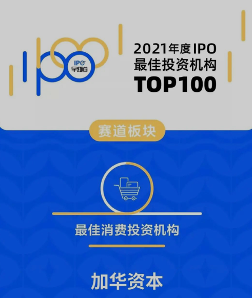 在IPO早知道「2021年度IPO最佳投資機構TOP 100」中,加華資本憑藉愛慕股份、東鵬飲料、滴滴出行三個IPO專案,榮登「2021年度IPO最佳投資機構TOP100」「2021年度消費賽道最佳投資機構」雙榜單。