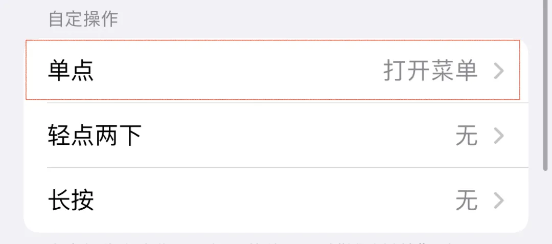 哦對了,大家記得把自定操作的「單點」,選成“開啟選單”噢。