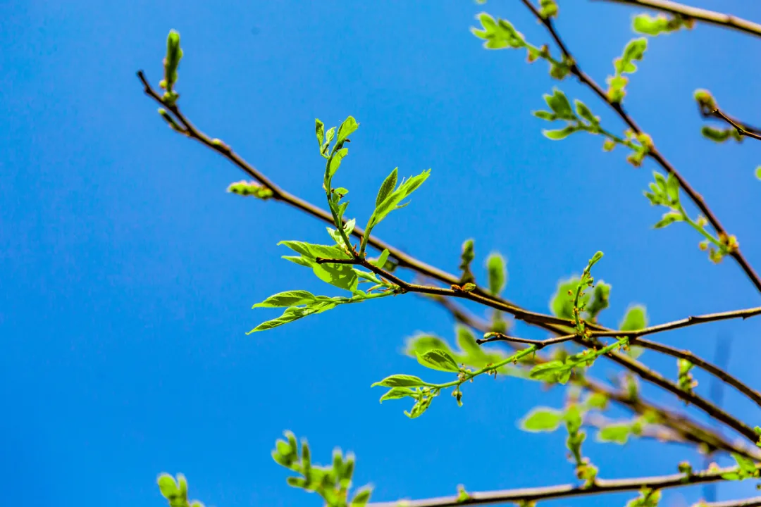 青色的楊柳新抽枝葉。
