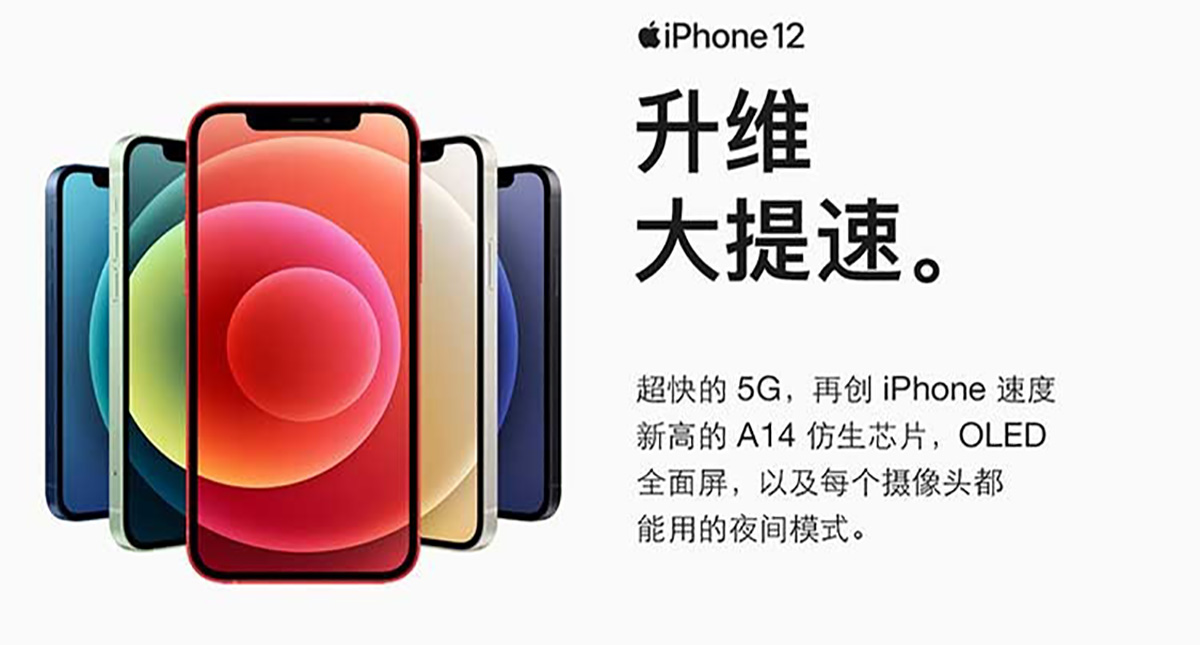 這款手機於美國西部時間2020年10月13日上午10點在蘋果的第二場秋季釋出會中正式釋出,並且於2020年10月16日,iPhone 12國行版開啟預購。