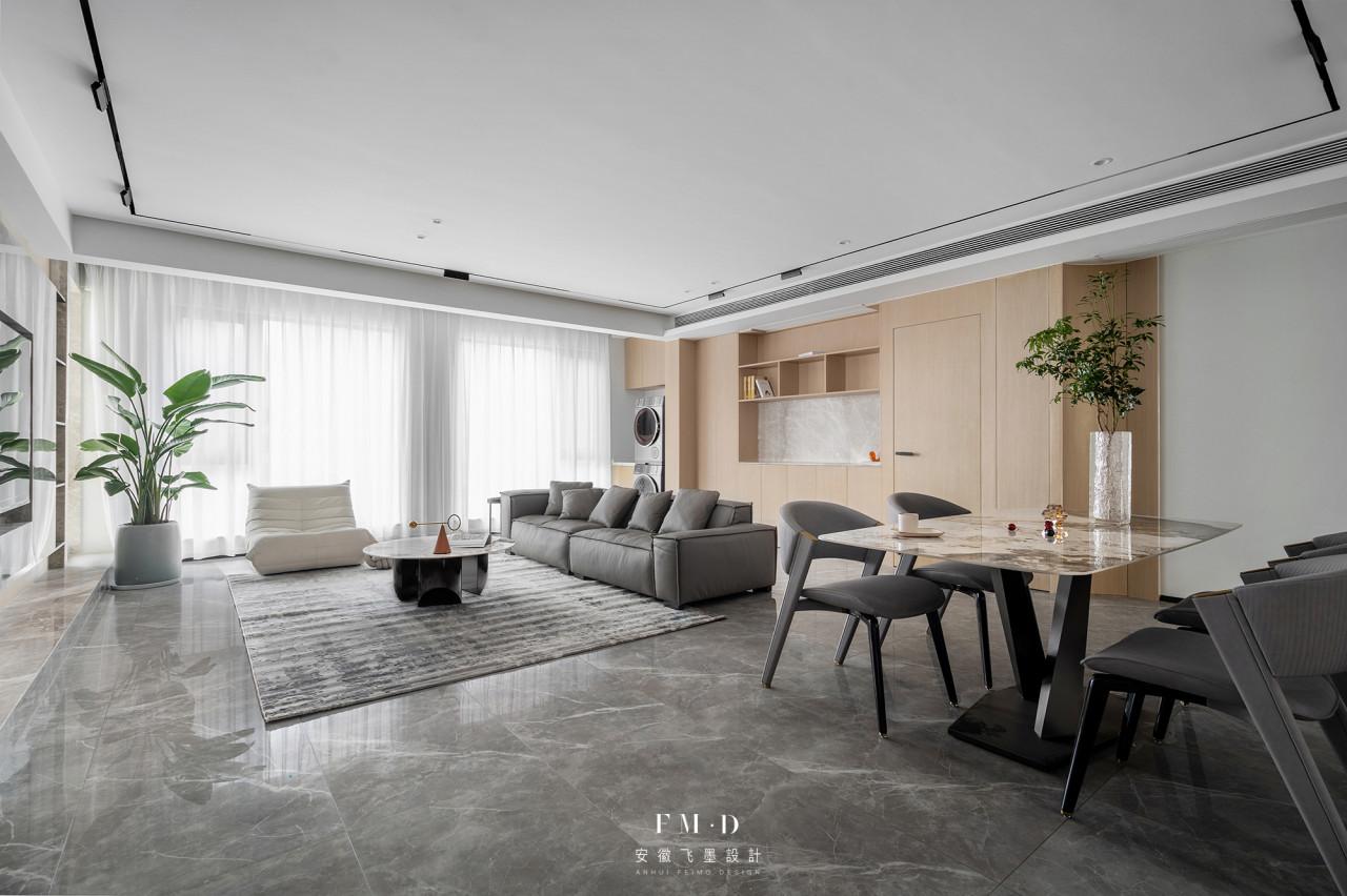 進門見廳沒有獨立的玄關,缺少私密性也存在一些尷尬,於是設計師利用大客廳的優勢在入戶處隔出一間衣帽間,這樣既能遮擋住視線,又能利用衣帽間的牆體增加玄關櫃,不光解決入戶的問題,家裡也能多個衣帽間,全家人的衣服再多收納也沒壓力,尤其是女業主會更滿意。