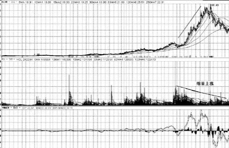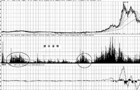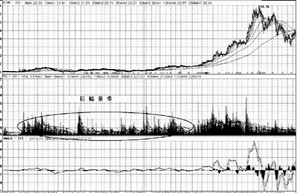 其股價未經大幅拉昇前的建倉時期,形成了兩組巨大的“成交量堆”,是對“放量”的完美註解,它們分別在建倉、突破、拉昇、創出新高,甚至是出貨階段都釋放出了巨大的成交量