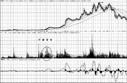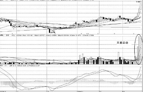 近期所形成的成交量與前期相比,不僅有了猛增而形成巨大增幅,並且創下了歷史性的新高,這樣的“成交量柱”通常被人們形象地稱為“天量”