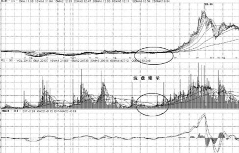 還有一種情況股價也會經常出現“縮量”現象,這就是主力的“洗盤階段”。莊家在每次大規模建倉之後,大幅提升股票之前,或是拉昇過程中的“震倉階段”,為了驅趕獲利的浮籌,減輕拉抬壓力,都會不同程度地向下壓低股價,這一時期股價下方也會形成明顯的“縮量”現象。這種“縮量”是對主力控盤程度、市場籌碼屬性的最好檢驗,往往成交量萎縮得越徹底,越說明主力的控盤能力強,該股的未來潛力也就越大。