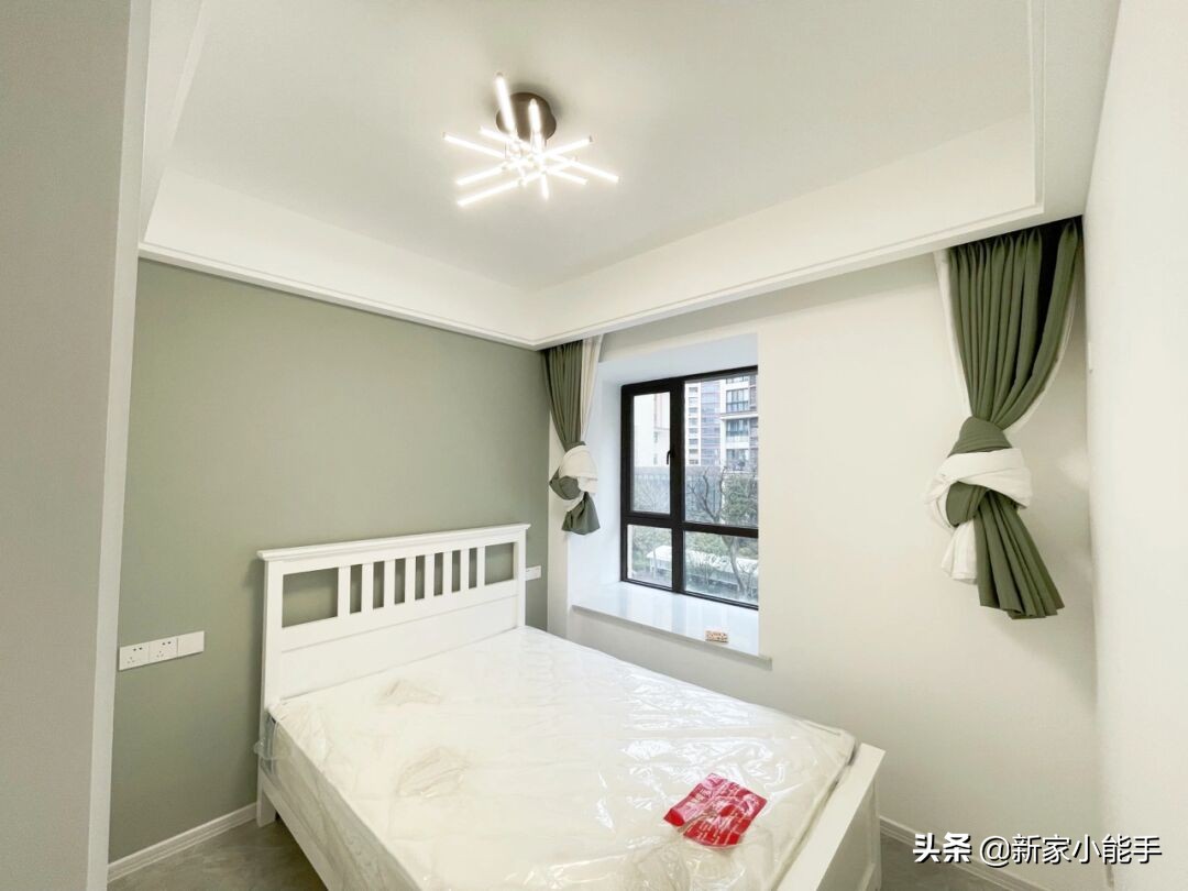 次臥基本也是一樣的效果,做了窗簾盒,顯得比較美觀,顯得更大氣。飄窗不能打掉,只能保留著沒有,可以當小沙發使用哈。