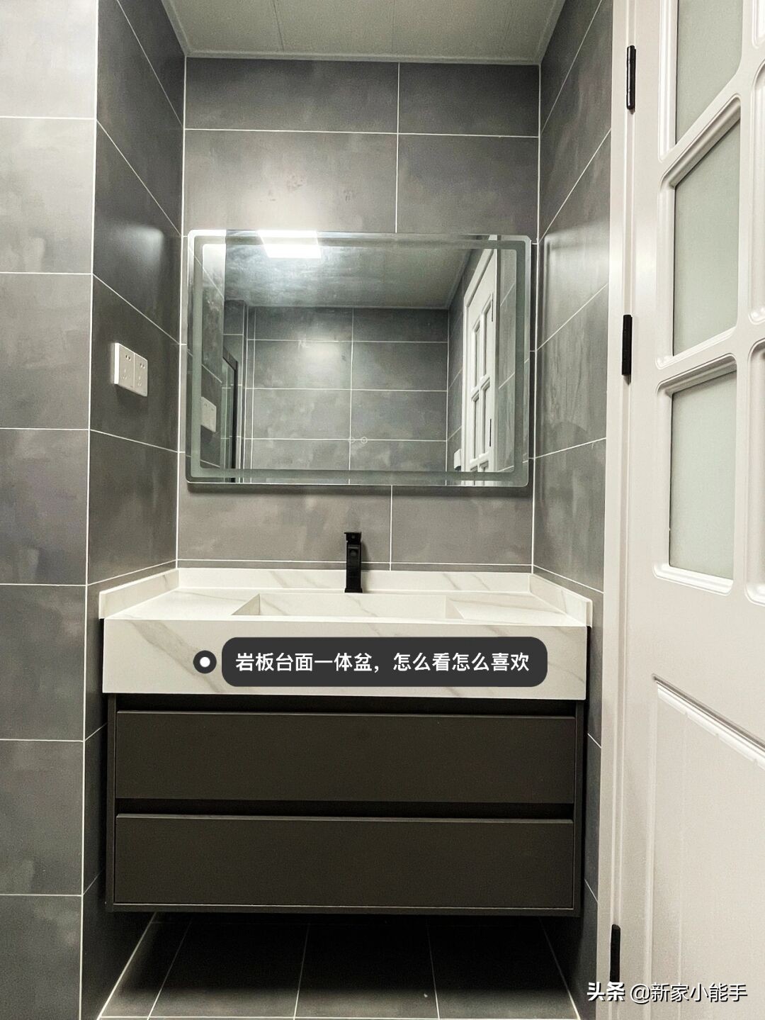 其實嚴格意義說,算上浴室櫃,做了三分離,做保潔的時候會方便很多呢。鋪貼的瓷磚也是灰色的,看著都很喜歡。