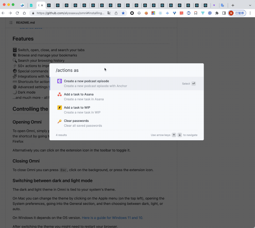 Omni 是一個瀏覽器外掛,它讓你能夠想使用 Mac 電腦一樣使用你的瀏覽器,最近 Omni 接連登上 Github 趨勢榜與 ProductHunt 榜首,成為大受各種程式設計師、產品設計師的追捧的生產力工具!
