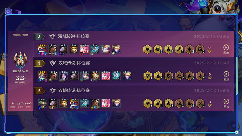 戰績可以看到即使大頭沒有3星都勉強混到了老三,所以說陣容強度是不差的,就怕發牌員來搞事情,不知道兄弟們會不會經常遇到3費到死不三星的情況,這是特別噁心的,明明外面一家同行沒有,缺抽不到想要的3費,所以玩3費的話是存在小風險的,不如4費穩定,不過好處就是3費2星出的早容錯非常高。下面陣容簡析!