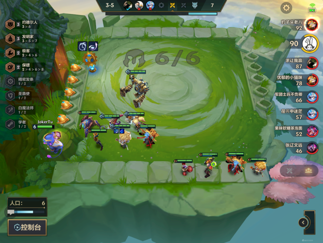 6人口主要就是3約搭配3發明,大頭二星+藍BUFF基本是隨意連勝的,後面7人口大搜開出5發明,7人口是必定要開5發明的,不然強勢期不利用好,後面8人口5發明不強的時候,就只能博大頭3星,不推薦。