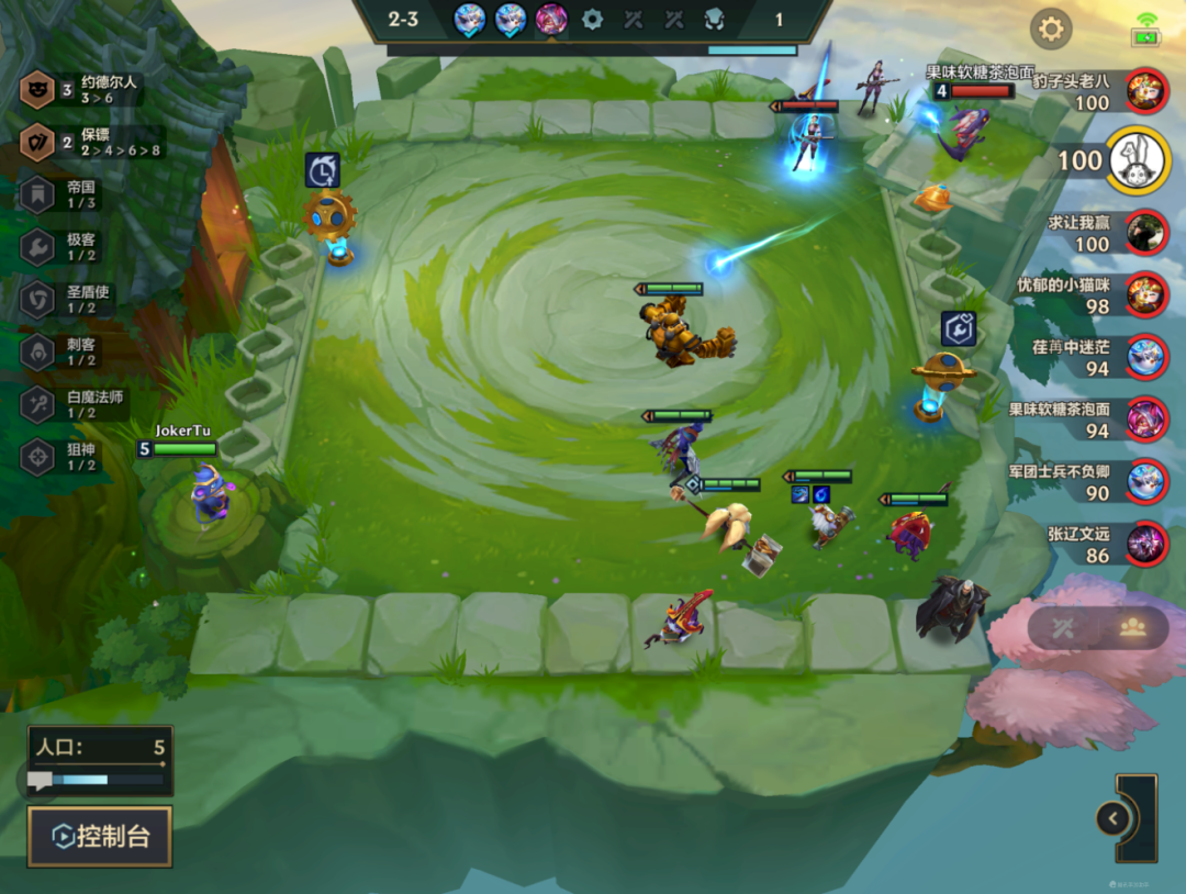 2-3搶5人口,5人口圍繞3約補羈絆即可,黑魔,白魔,狙神,極客,保鏢均可,優先烏鴉,機器人,螞蚱,實在沒東西上補刺客偷後排也可以。