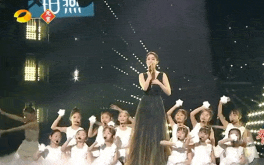 【名場面二】張小斐身穿黑色紗裙,在湖南衛視元宵喜樂會的舞臺上演唱《仰望星空》,與童聲合唱,氣質溫柔。