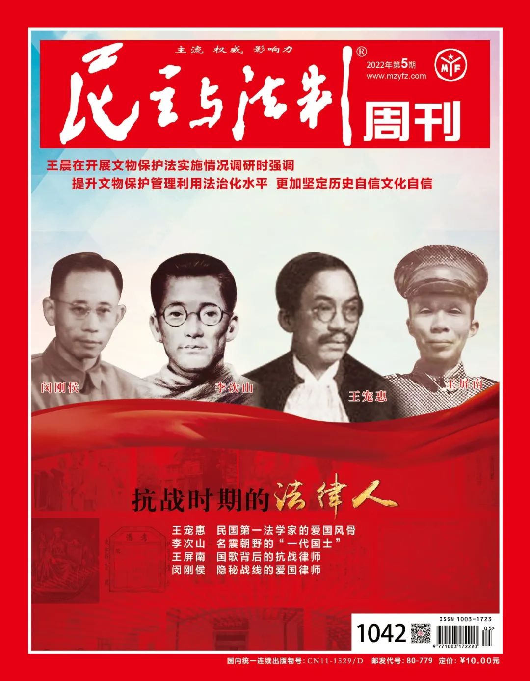 本刊2021年第42期聚焦推出鬱華、周鯁生、楊兆龍、韓德培等在抗戰中不屈不撓的法律人(以出生年月先後為序)的英雄故事,本期繼續推出王寵惠、李次山、王屏南、閔剛侯等在抗戰中俠肝義膽的法律人(以出生年月先後為序)的愛國往事,既是為了警醒我們要銘記歷史、緬懷先烈、珍愛和平,更是為了告誡每一位中國人:落後就要捱打,要以偉大抗戰精神為動力奮力前行,以百倍努力建設我們的國家,實現中華民族的偉大復興。