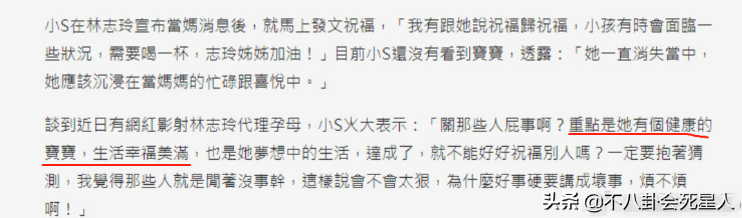 立場很堅定地維護好友,不過話卻被網友挑出問題,質疑為什麼不直接回復有沒有代孕,而是說什麼只要有健康的寶寶就很好,間接“承認”了林志玲代孕的傳聞。
