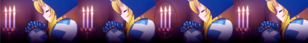 當然,有些場景並非越清晰越好,比如畫面中的一些遠景,原本就是刻意虛化的。以下圖為例,Real-CUGAN 修復之後,近景處的人物形象變得更清晰,遠處的蠟燭仍然保持模糊,使得畫面更有層次感。
