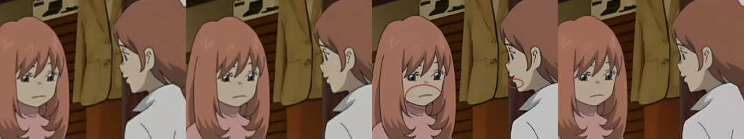 在動漫中,人物清晰的線條對角色形象的塑造具有重要的作用。線條模糊會嚴重影響觀看體驗。以下圖為例,Real-CUGAN 清晰地修復了動漫中角色的表情線條: