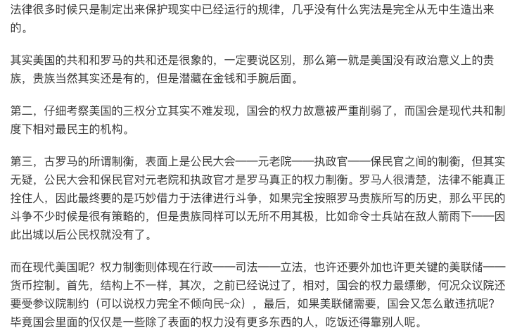 至於羅馬共和國與現代的共和國有什麼區別,看一下下面的說法: