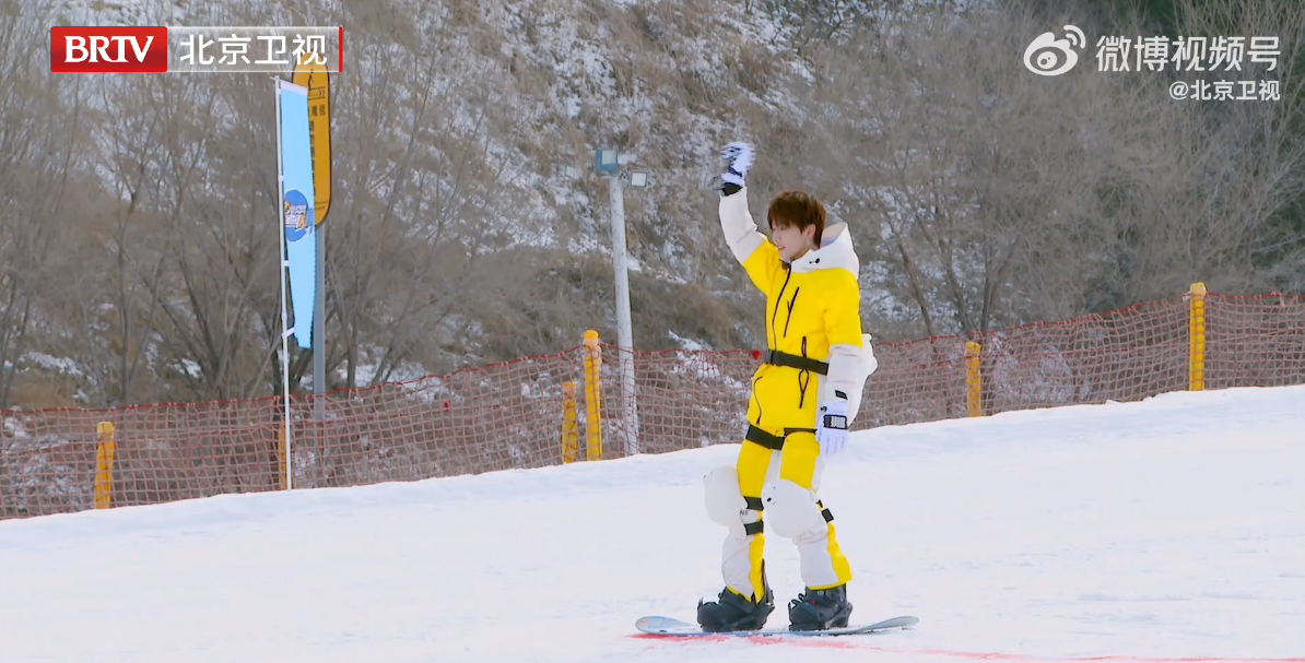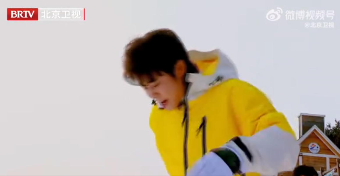 在《運動者聯濛》中王濛和劉雨昕 PK滑雪,到達終點後說:等等劉雨昕,免得她著急。