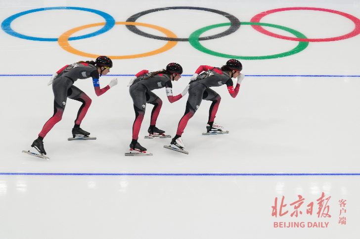 2月15日下午,北京冬奧會速度滑冰女子團體追逐決賽在國家速滑館“冰絲帶”進行,加拿大隊最後時刻擊敗平昌冬奧會這個專案的冠軍日本隊,奪得金牌,並以2分53秒44的成績重新整理奧運會紀錄。