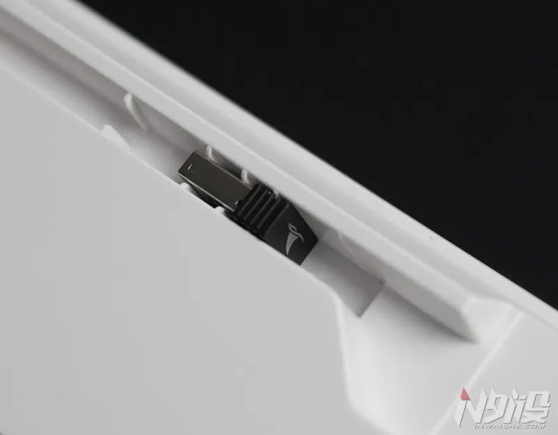 鍵盤底部增加了獨立的Win/Mac切換鍵和電源開關,其他基本佈局沒動。就像前面說的底部沒有獨立的接收器收納倉,不過使用者要是願意,也可以把USB接收器塞進右導線槽中專用卡位裡,前提是使用者用不上右導線槽。腳撐的情況也是老樣子,二段式長短腳撐都很穩,但開啟長腳撐後鍵盤會抬得很高,有條件建議還是用碗託。Gulf Racing和AJ有過之而無不及,開啟腳撐後F區鍵帽最高點離桌面起碼有6cm。