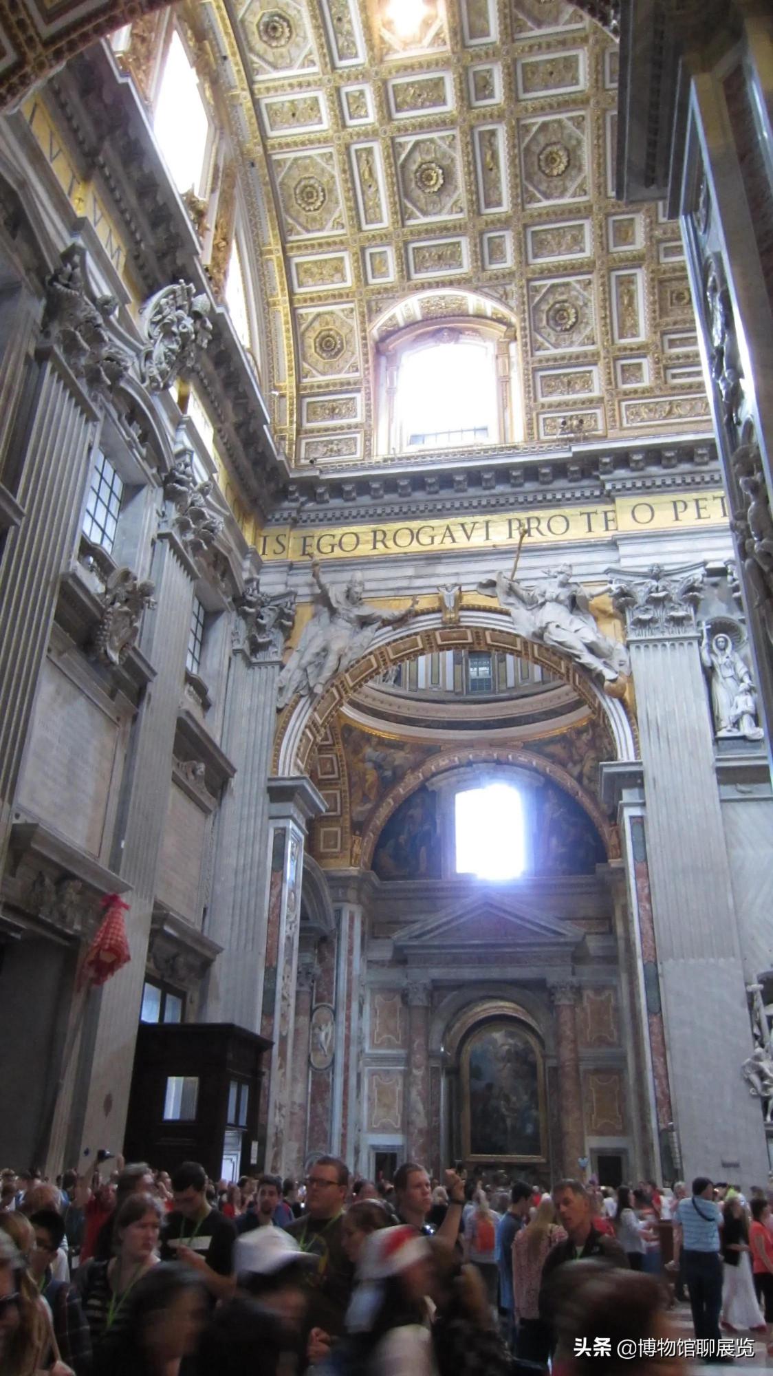 教堂主建築高45.5米,長210米,可同時供六萬人同時祈禱;教堂內部裝飾異常華麗,華麗到你幾乎無法呼吸的程度。最重要的藝術品來源於被稱為“巴洛克藝術之父”的天才雕塑家貝爾尼尼,和另一位著名的大師米開朗基羅。
