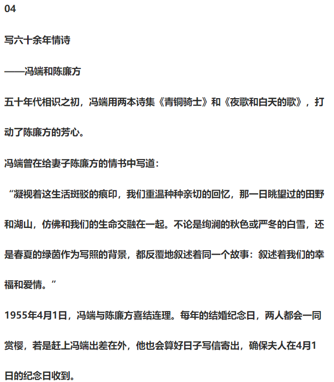 1985年,馮端與陳廉方結婚三十週年,馮端寫下: