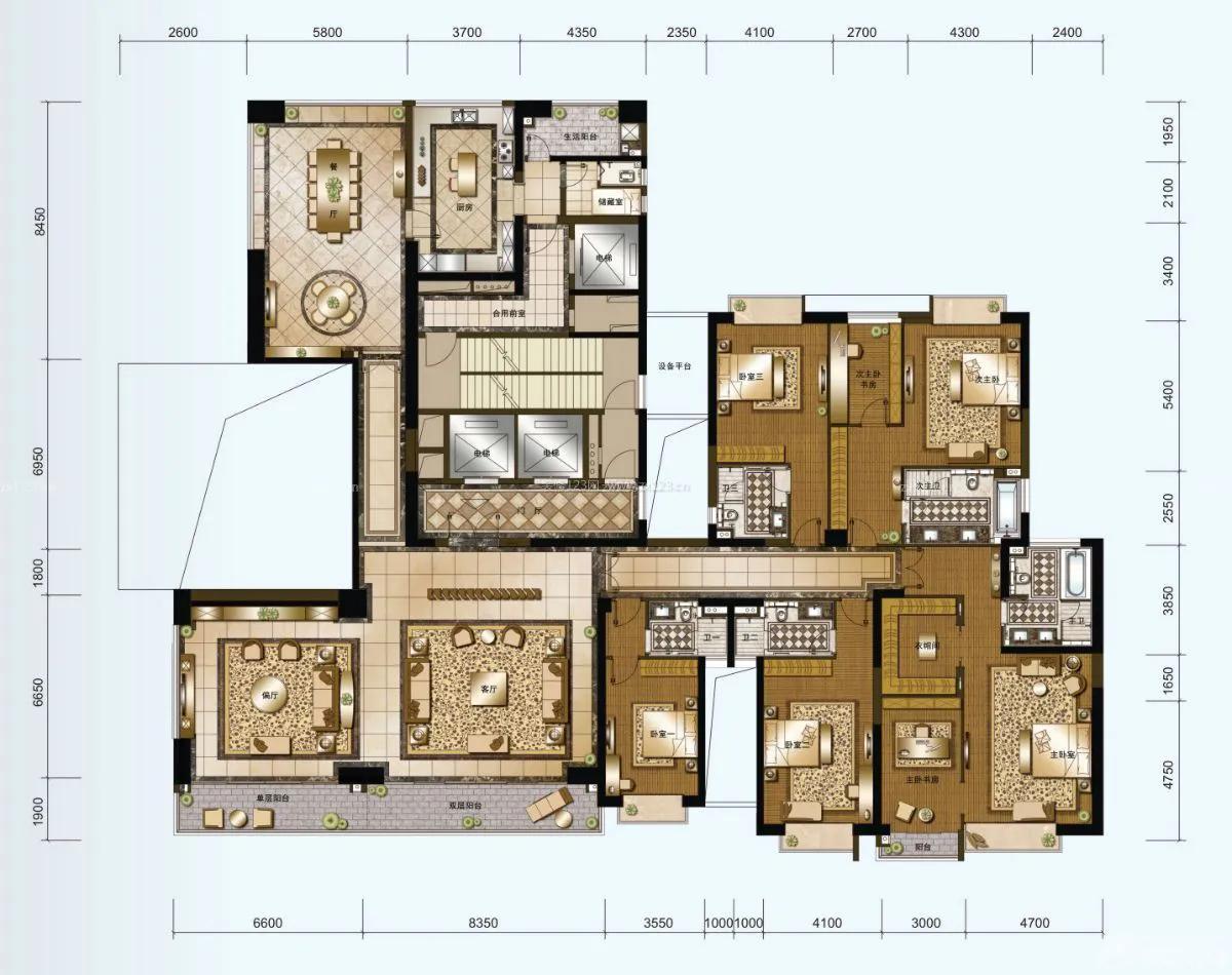 中部兩部電梯到達獨立門廳,地面可以做漂亮的大理石拼花,體現了豪門望族的尊貴儀式感。