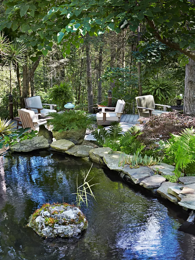 亞洲風是他們的目標風格,在這個過程中,他們修剪樹木、清除灌木叢,並開始將日本的基本元素——水、岩石、沙子、植物和小徑——融入他們的設計中。