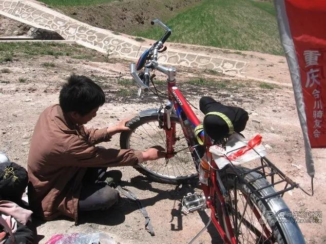 快走到日月山下時 胎又爆了 友好的藏民二話不說就幫我處理