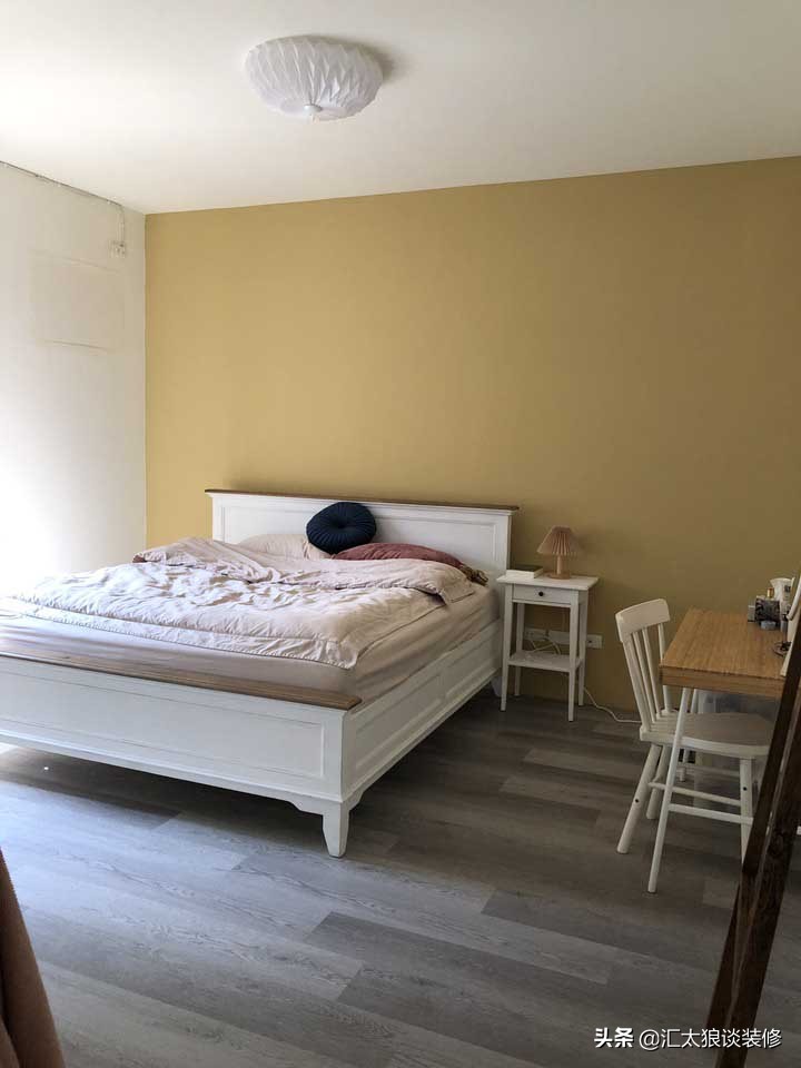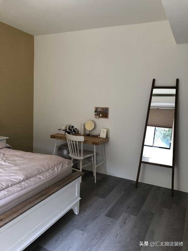 主臥裡,統一選了白色的傢俱,配上原來的米黃色牆面和淺色木地板,還挺搭的。雖然不如人家整體定製的顯高階,但溫馨自然,實用性也完全足夠了。