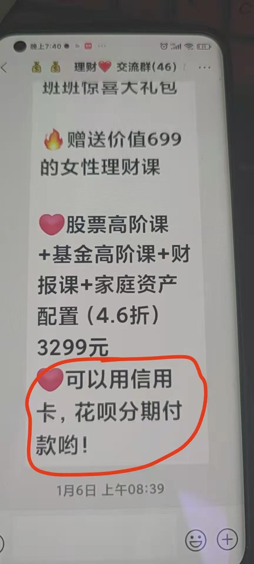 對方連番電話轟炸,噓寒問暖、推薦用花唄分期付款,媽媽終於動心了。等掏了錢,上了七八節課後,“老師”讓她買基金、買股票,媽媽表示“學不會”、“不敢買”。