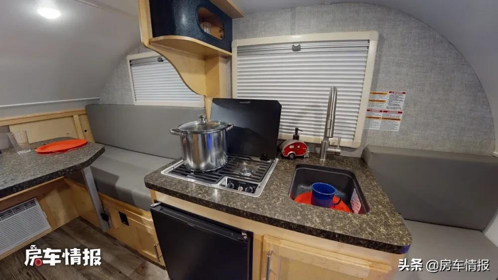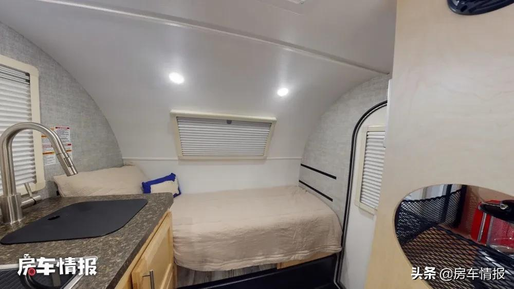 這款形似“淚珠”的拖掛房車,採用管狀鋼底盤,廂體使用的是塊狀泡沫絕緣和凝膠塗層玻璃纖維材質,車廂內部則採用複合牆板和複合地板。