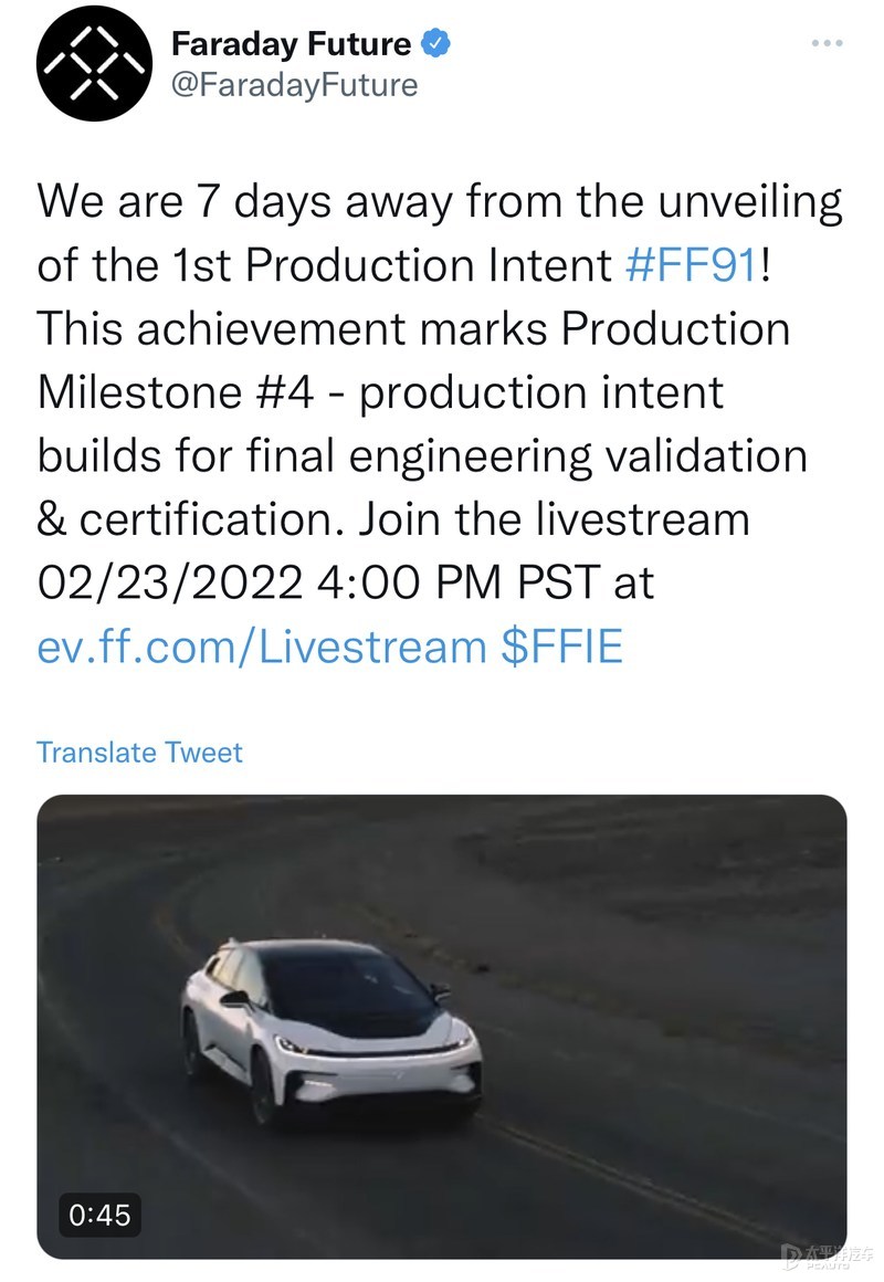 【太平洋汽車網 新車頻道】近日,我們從法拉第未來(Faraday Future)官方獲悉,FF 91(詢底價|查參配)量產版將於當地2月23日(北京時間2月24日)正式釋出,該車將主打純電豪華車市場,中國和美國的售價分別為200萬人民幣和20萬美元。