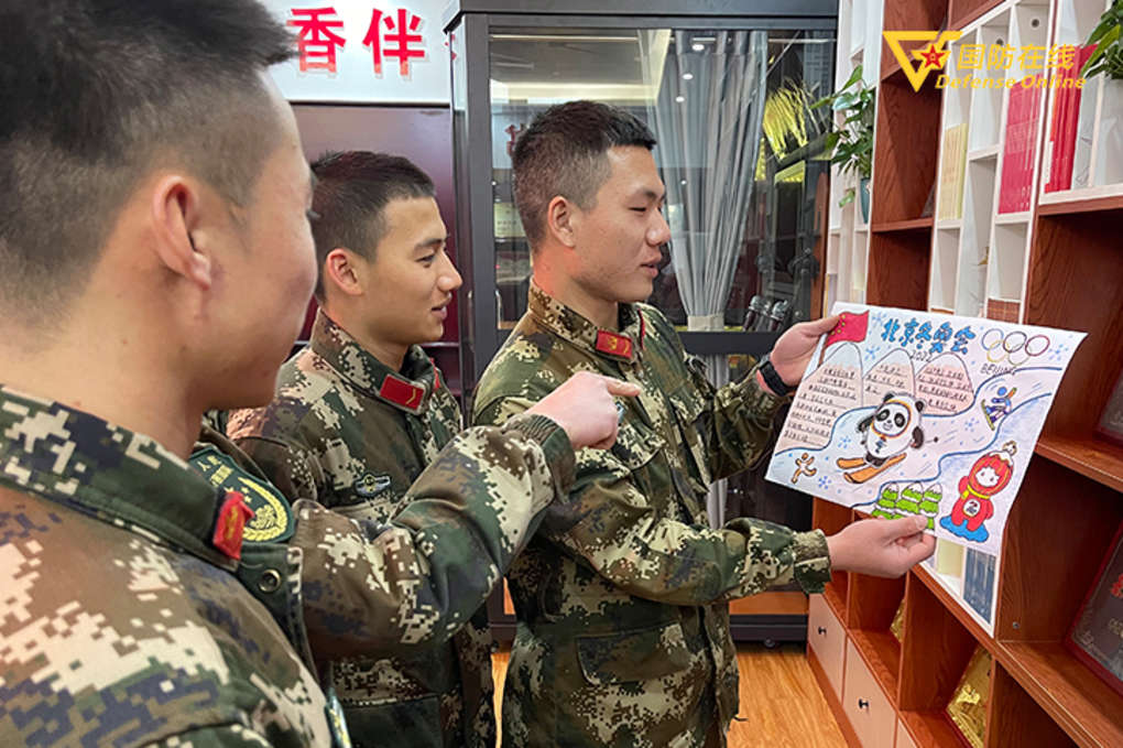 兵哥哥手繪“冰墩墩”,為冬奧會加油
