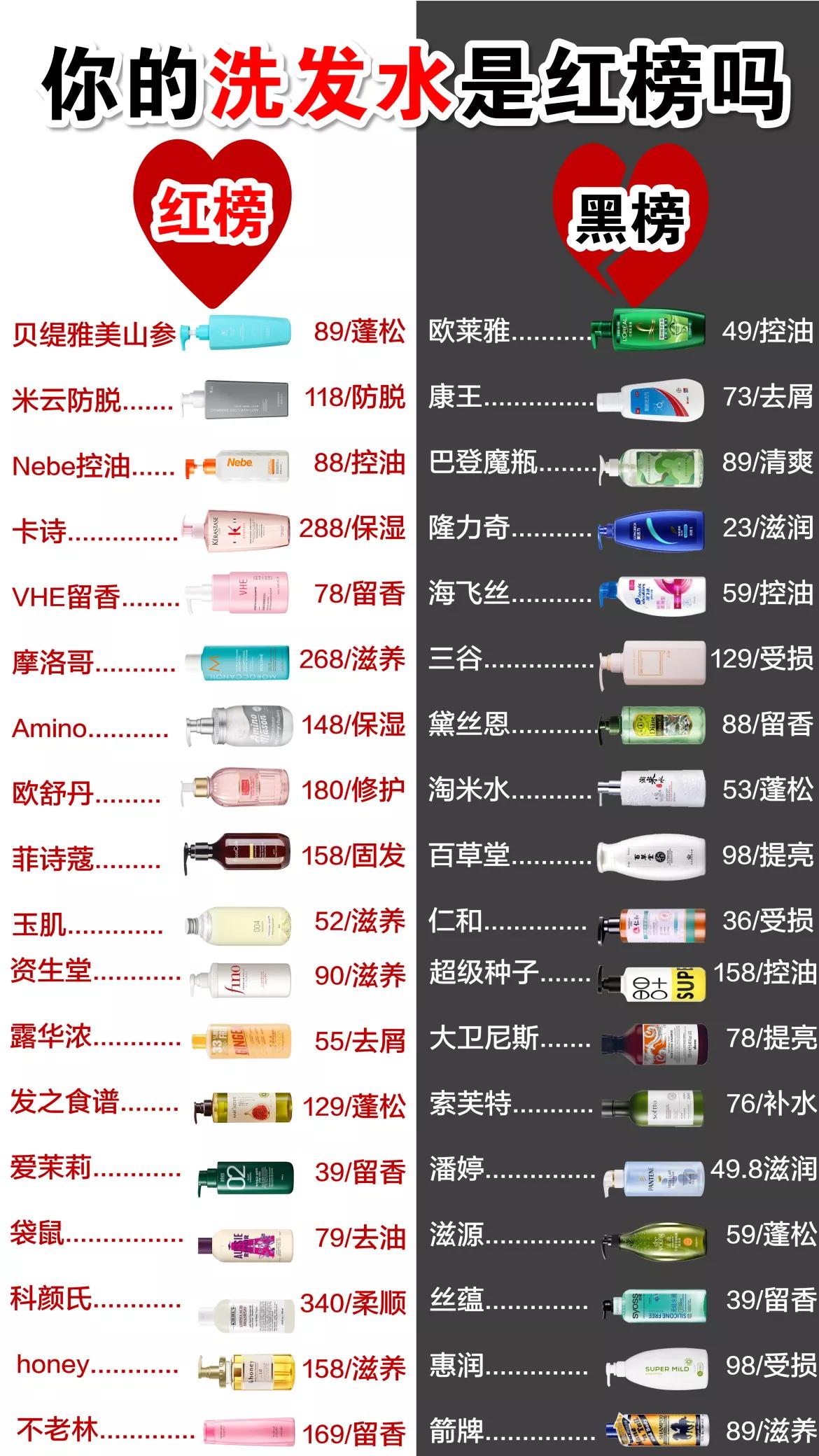 辛辛苦苦整理的這些洗髮水 有紅榜和黑榜 我還得多囉嗦兩句 洗髮水就跟護膚品一樣選適合'自己的 我用的這些真的都巨好用 用的最多的就是米雲防脫洗髮水 頭髮一點都不掉,髮質也是越來越好 你們用的都是什麼洗髮水呢,不會在黑榜吧?