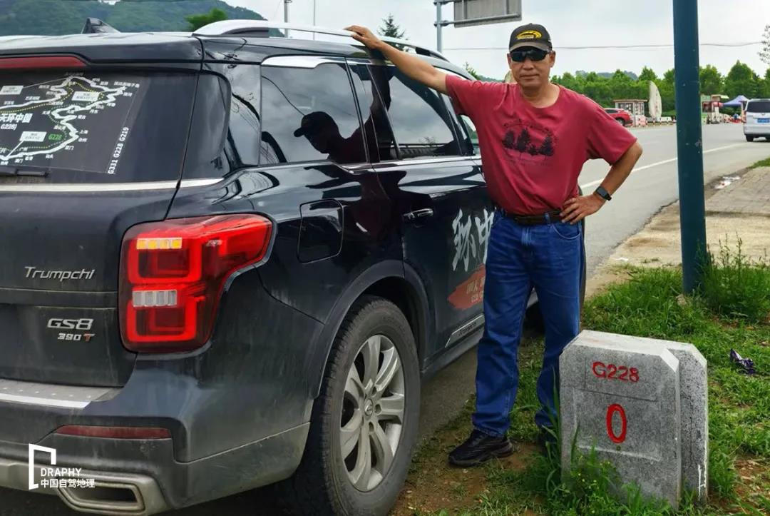 丹東分別是G331和G228的起點,老袁在虎山長城公園前找到了G228的零公里