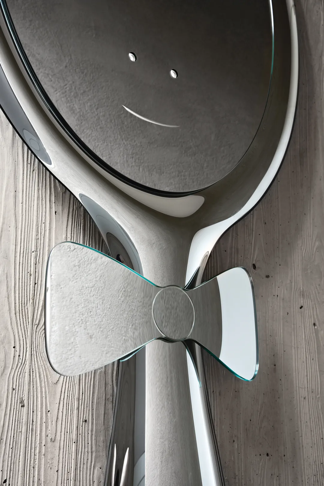 熱熔玻璃壁掛鏡,由 6mm 厚高溫熱熔平板玻璃成形,背面鍍銀。