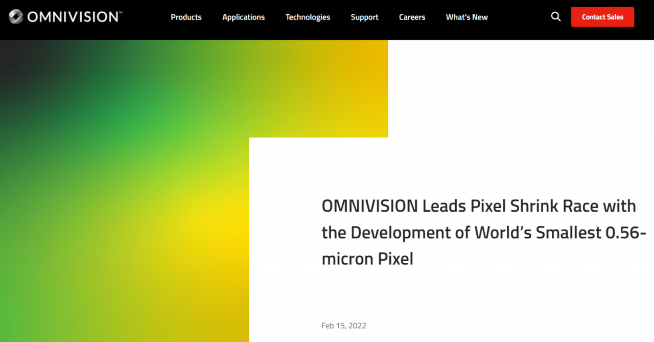 2 月 15 日,豪威宣佈了更進一步的突破,實現了世界最小 0.56μm 畫素技術,同時豪威研發團隊已經驗證,即便單個畫素尺寸已經小於紅光波長,縮小畫素尺寸並沒受到入射光波長限制。