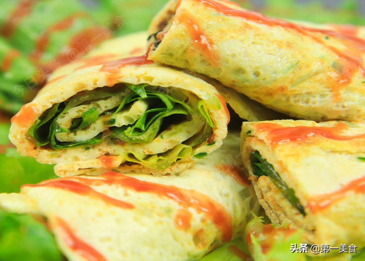 出鍋以後刷點辣椒醬,捲上生菜葉,有蛋有菜有營養,吃著又軟又香,味道好極了,一氣能吃四五張。