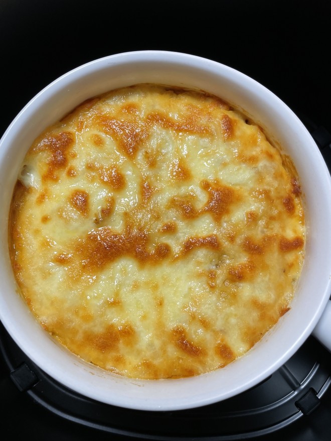 充分拌勻 - 在拌勻後的紅薯泥上均勻地撒上馬蘇裡拉芝士