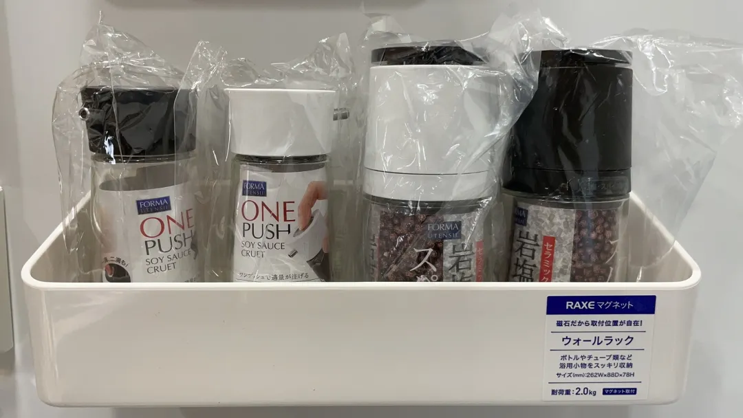 牆面磁吸式琺琅板,增加廚房小工具的收納力。