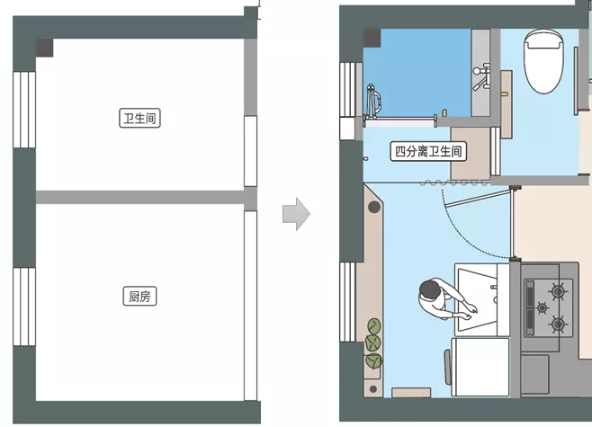 - 想要四分離衛生間:獨立馬桶間、浴室、洗漱間和洗衣間