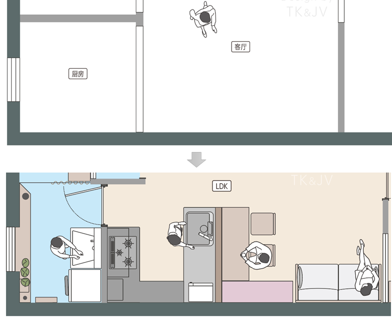 把廚房空間開啟就能完成LDK設計?其實並沒有那麼簡單。空間的相互關聯、使用體驗、視覺的層次等都需要綜合考慮,不可割裂開來看。