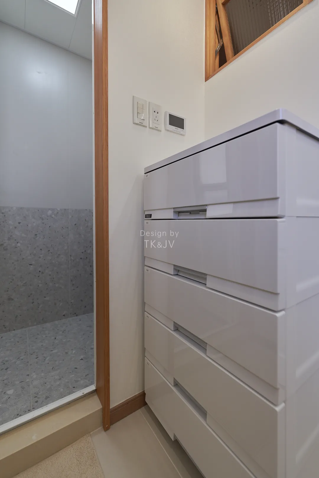 需要洗澡後用到的衣物可以存放在這裡,除了方便使用之外,也減輕主臥衣櫃的收納負擔。