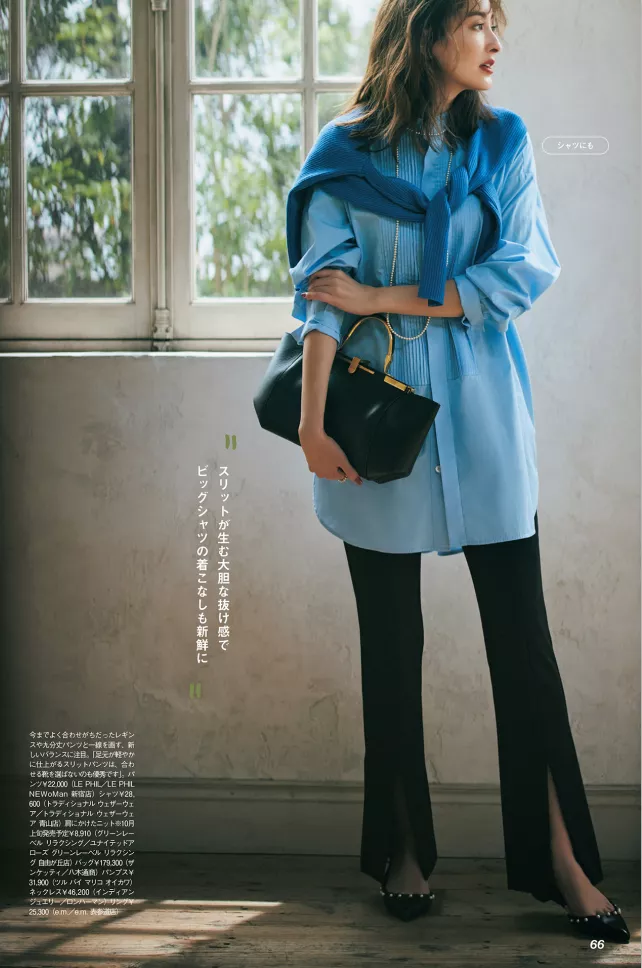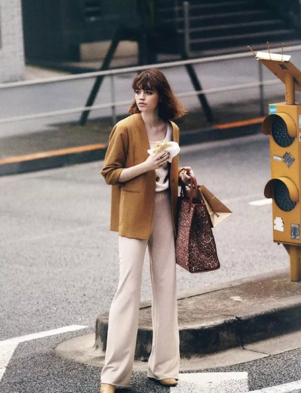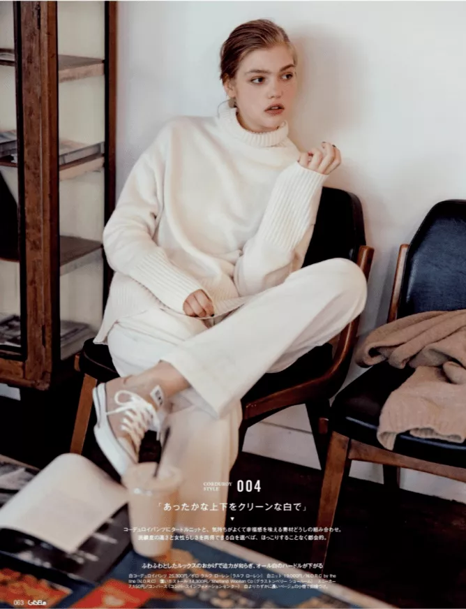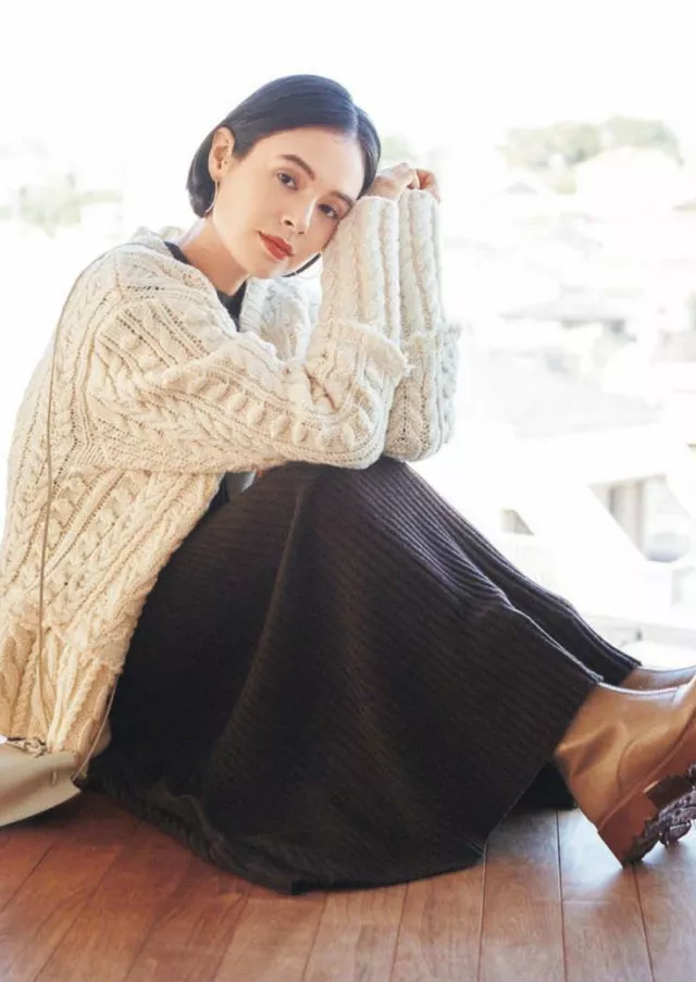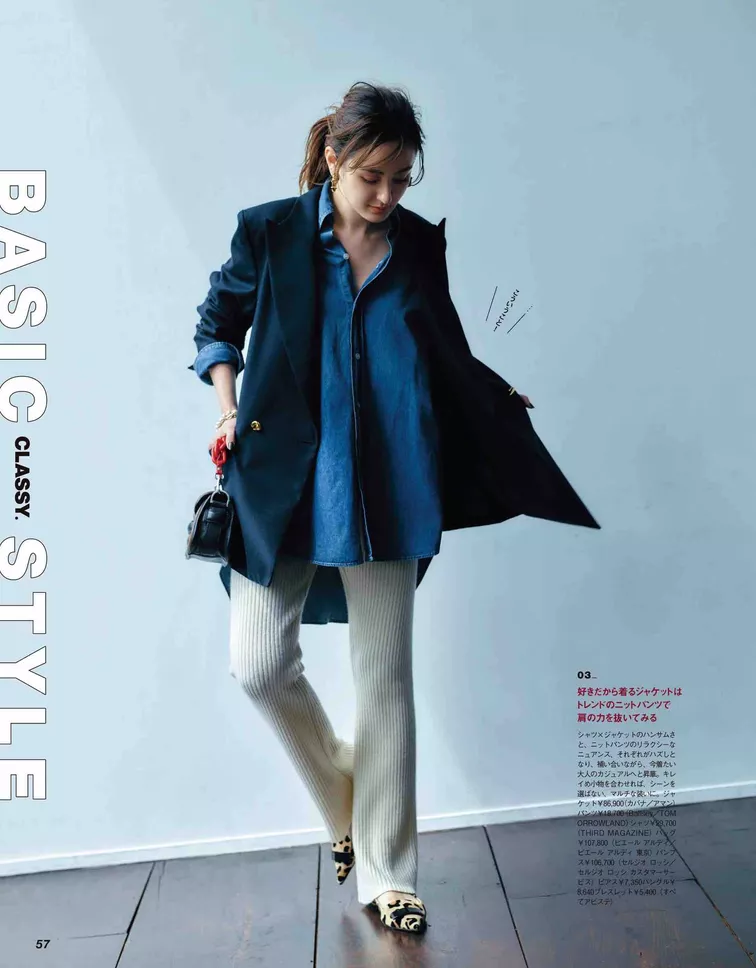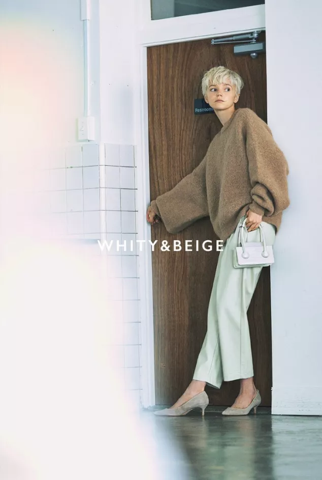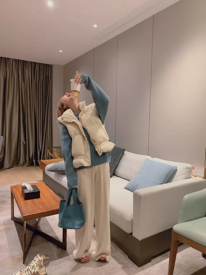 不管是什麼樣的單品,加上一條乳白色闊腿針織褲,那種隨意舒適又慵懶的範兒立刻就出來了。▼