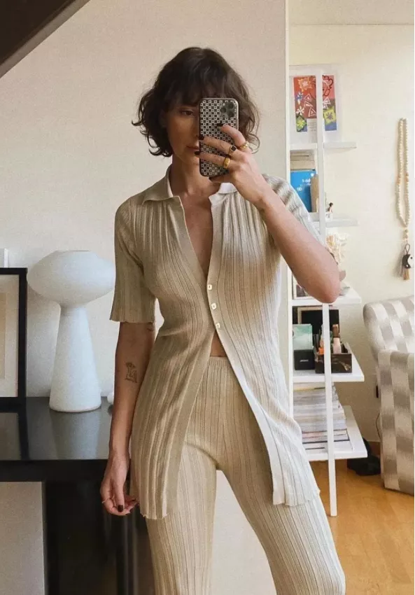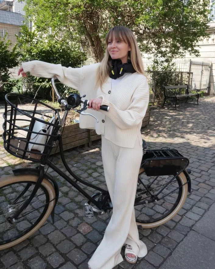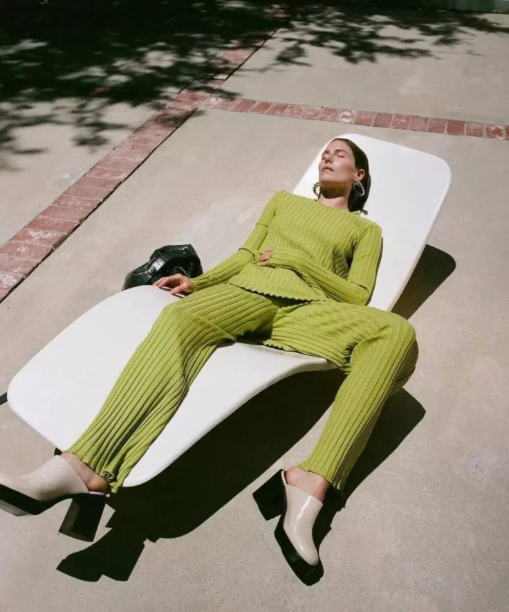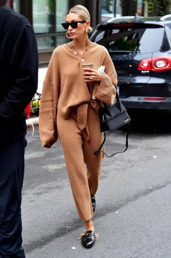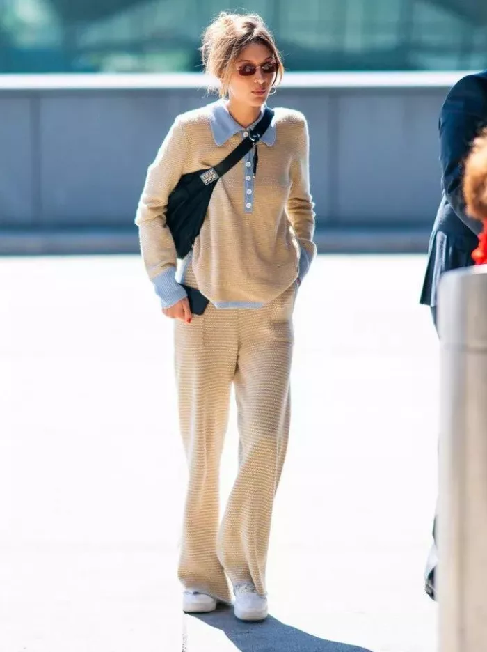 針織褲+針織衫的套裝是最慵懶,且最不需要費心思的時髦穿搭模板。